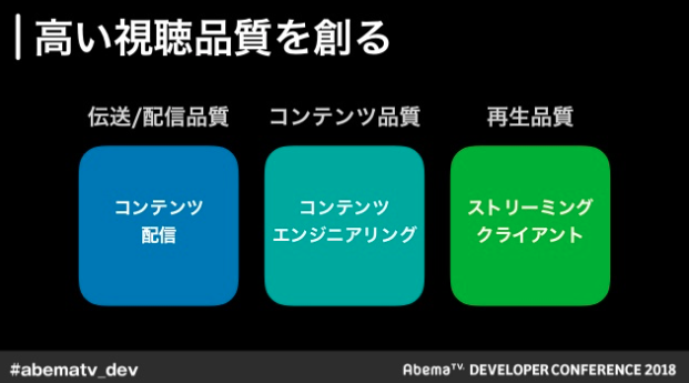 AbemaTVにおいて、高い視聴品質を創るためには、上記のような品質の組み合わせが必要だと、西尾はいいます。