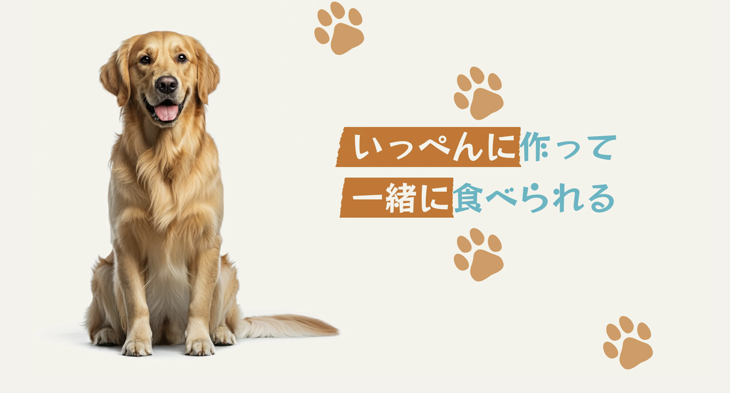 一つの調理工程で「愛犬も飼い主も笑顔になれる」ごはん作りを実現します。