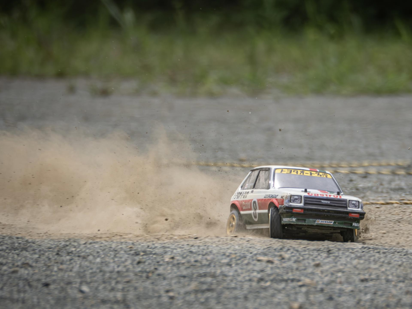 乾いた路面で土煙が上がると、さらに実車感が増してワクワクしたりします。