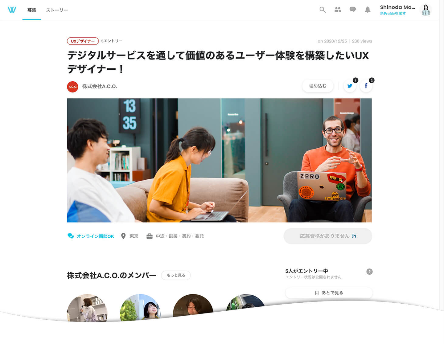 篠田 webサイト上だけではなく、SNSでのシェアなど異なる画角でも表現が伝わるようにトリミングしていきます。A.C.O.のオフィス内のクリアな雰囲気と社員のあたたかい姿に注目してもらうため、周りのぼやけた部分をトリミングします。より注目してもらいたい部分に視線を誘導し、画像の目的・印象がより鮮明になりました。