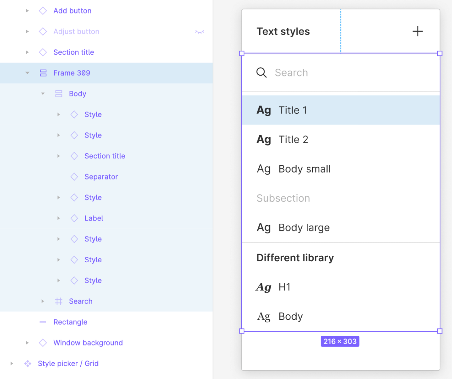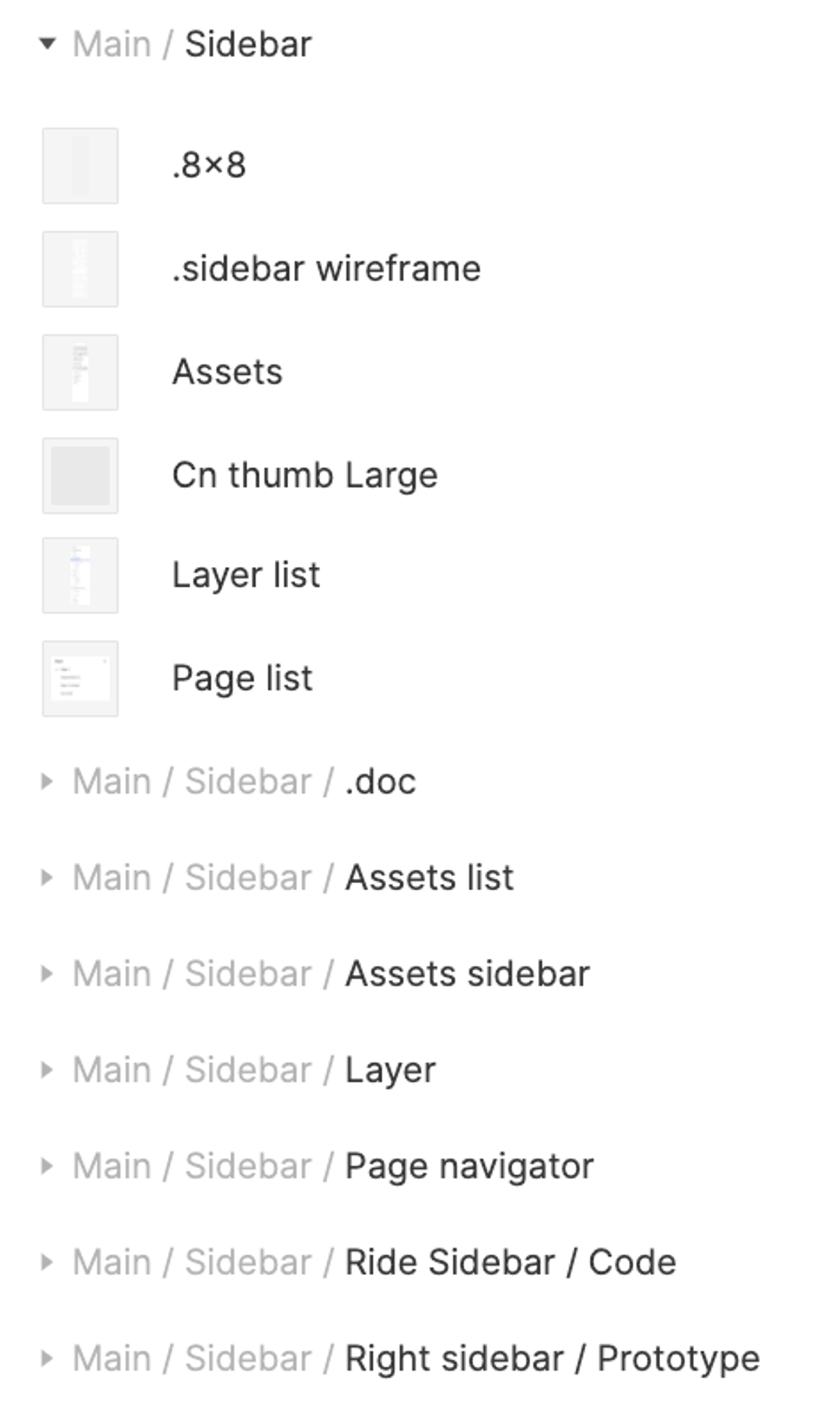 ちなみに各コンポーネント名の頭に親階層の名前をつけて「/」で区切るのではなく、フレームのなかに配置することでレイヤー名から親階層の名前を省略しています。