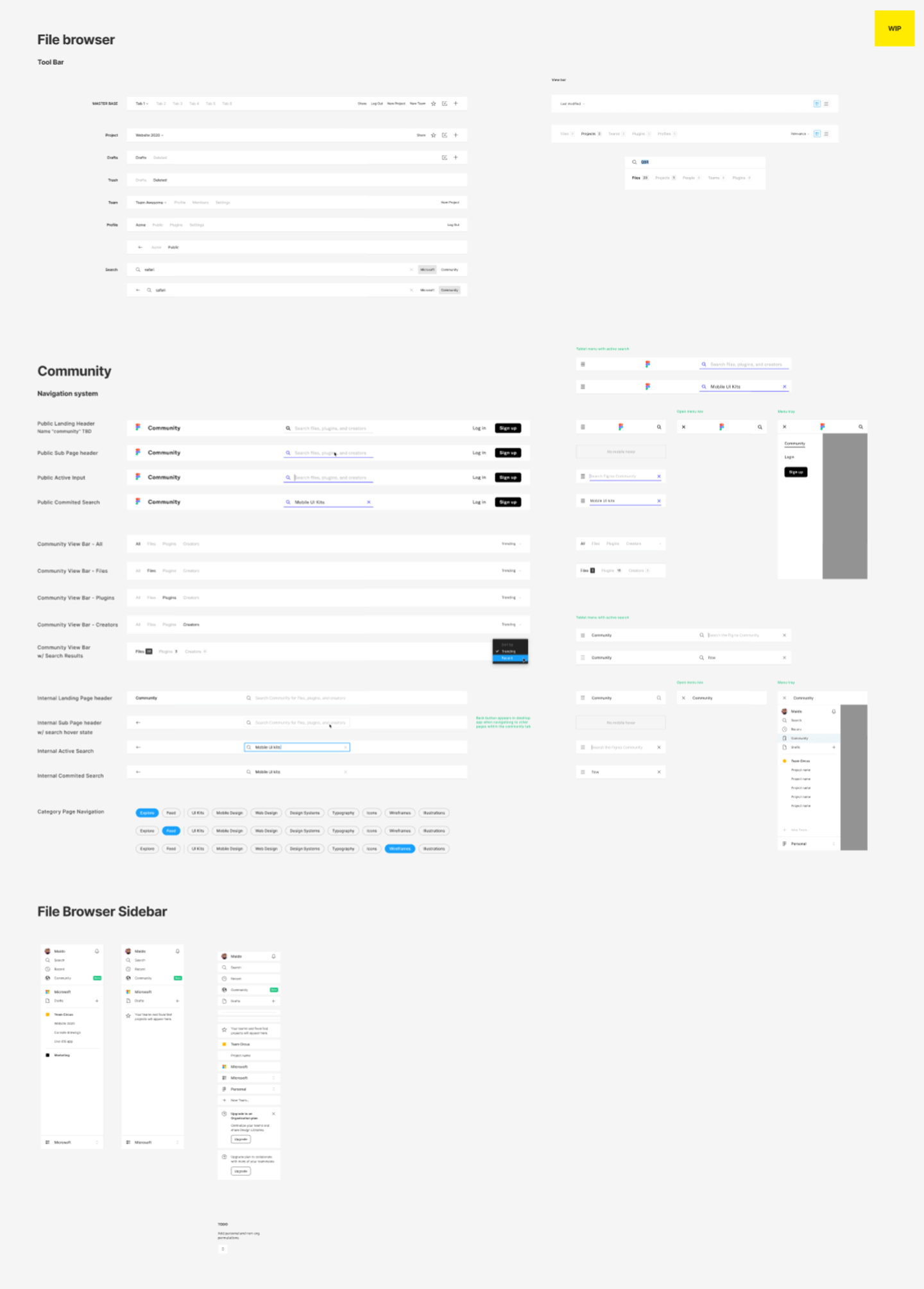閲覧権限のみのユーザーがFigmaを開いた場合や、スマホ、タブレットでのUIです。右上に「WP」(Work in Progress、作業中)のフセンが貼ってあります。