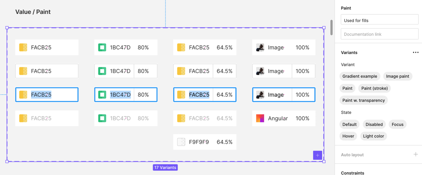 Figmaの特徴的なマルチカラーのカラーパレットが定義されています。
