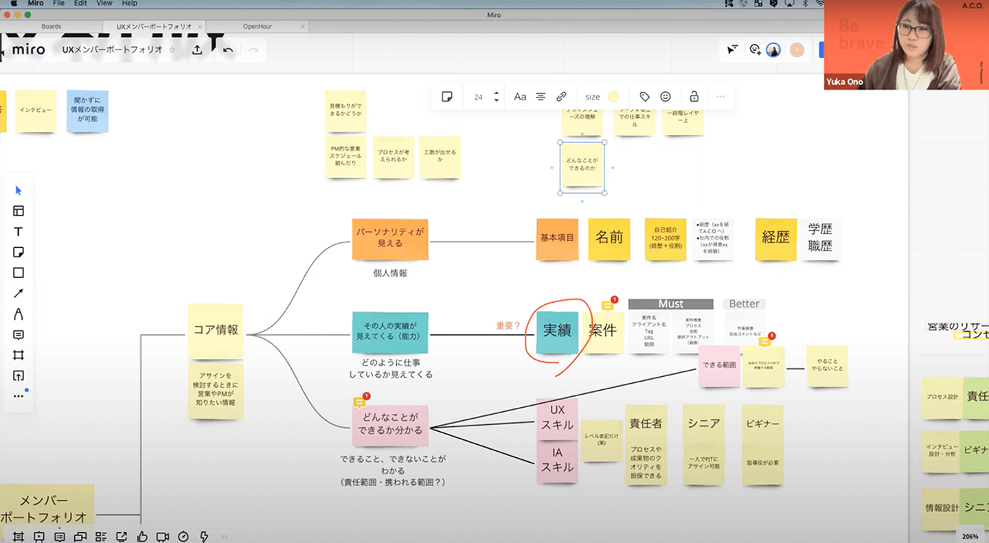 Open Hourでは主にUX/IA部のメンバーがプロジェクトで抱えている問題や知りたいことをトピックにしています。トピックについて参加者同士でナレッジを共有したり、ディスカッションをする形式です。