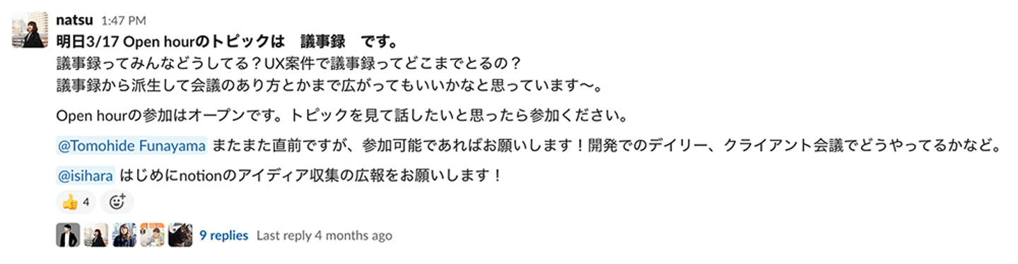 私が最初にOpen Hourをやろうと思ったきっかけはUX/IA部のメンバーの一言でした。