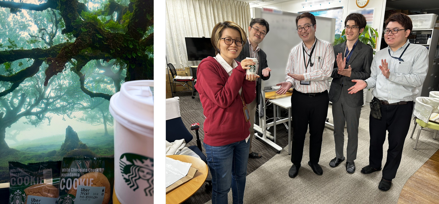 選ばれた社員には、お祝いとしてスターバックスのコーヒーやクッキーが贈られました。