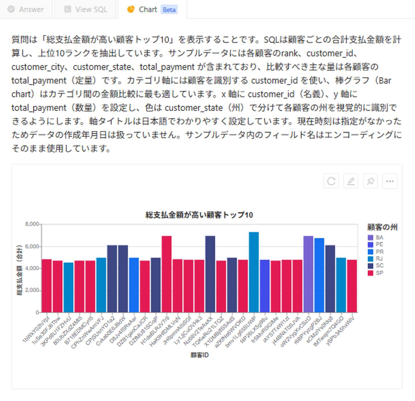 これは、自然言語(日本語など)で質問すると、分析結果を返してくれるツールです。