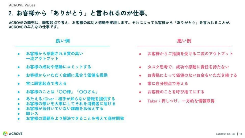 バリュー「お客様から「ありがとう」と言われるのが仕事。」に対して営業部門で出た意見