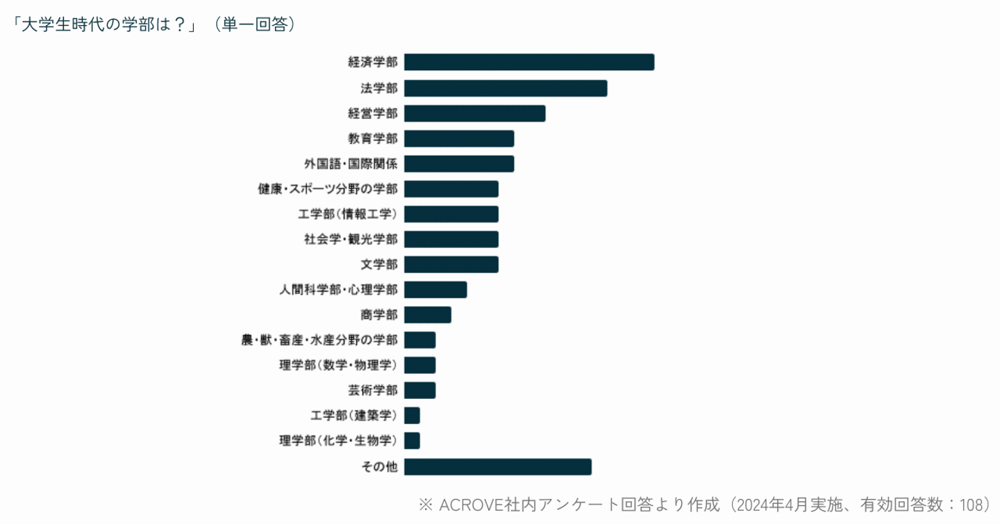出身の学部は、「経済学部」が最も多く、「法学部」「経営学部」が続きます。