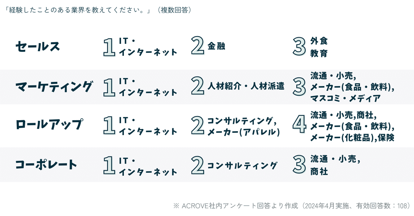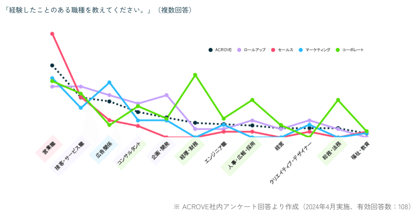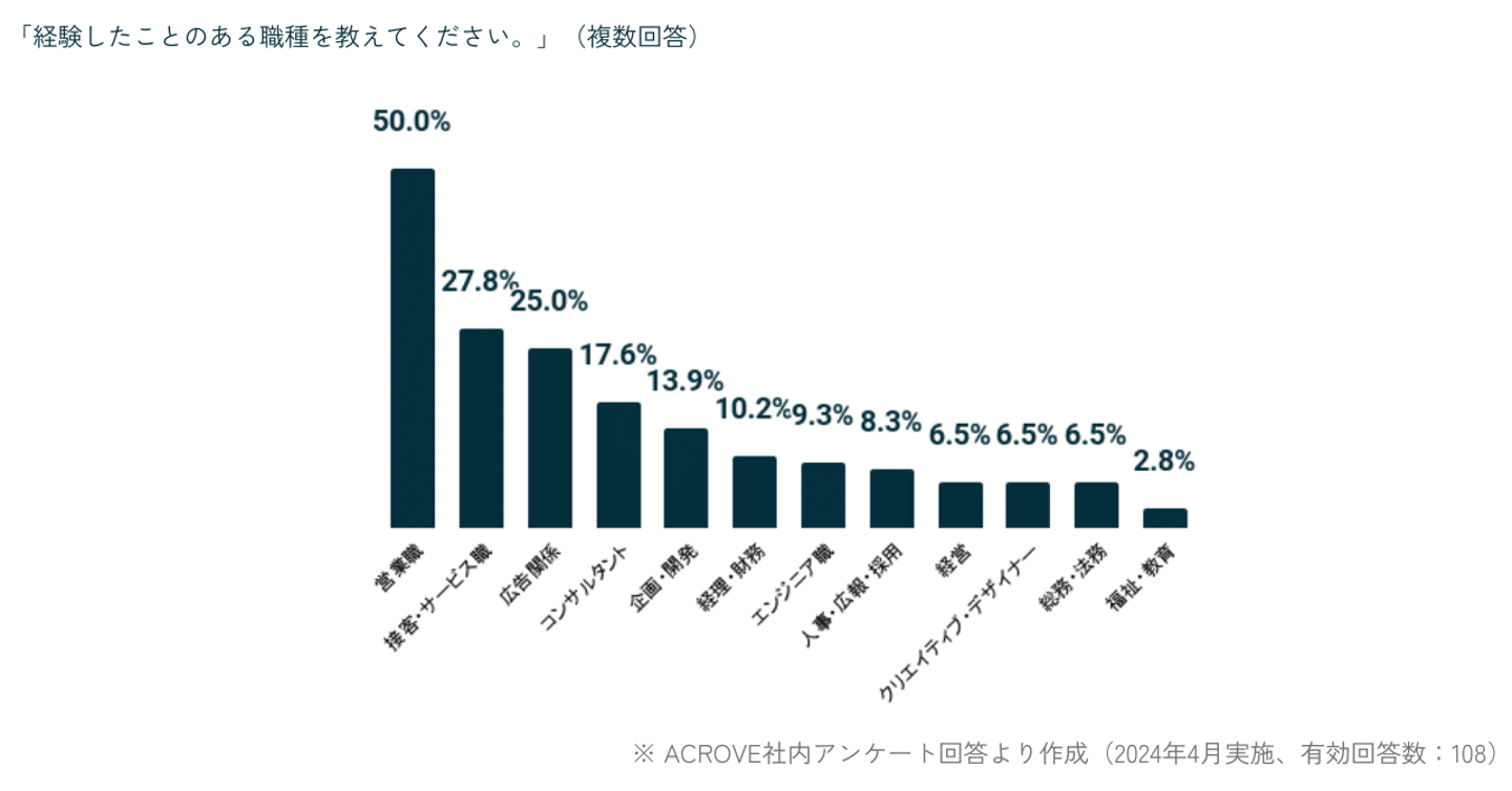 ACROVEメンバーの半数が営業職の経験者であることがわかります。