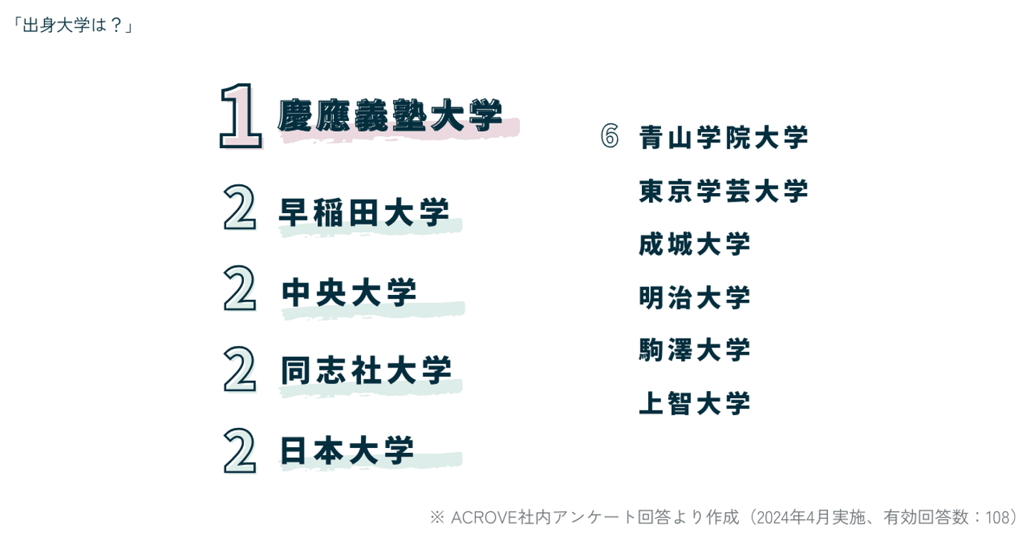 大卒のメンバーに対して、出身大学を聞いてみました。