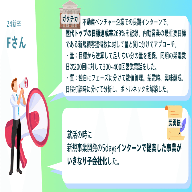 本日のnoteは、ガクチカ・武勇伝シリーズ第2弾、24新卒篇です🌱