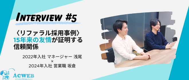 ACWEBの平均年齢は28歳。同世代のメンバーが多く、代表や創業メンバーと近い距離で意思疎通できる環境です。意味のない上下関係は作らず、社歴や年齢・ポジション問わず、どんな関係であってもお互いへのリスペクトや想いやりを持つ事を意識しています。その為、新入社員が社長をいじり倒すという光景も、ACWEBでは日常です!