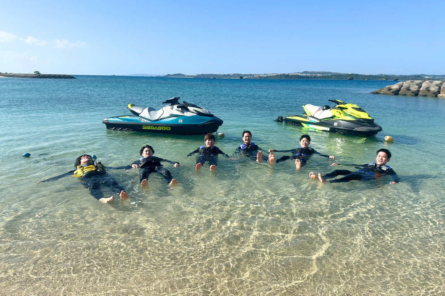 マリンスポーツチームは、沖縄の透明度抜群の海でフライボードとウェイクボードを楽しみました!