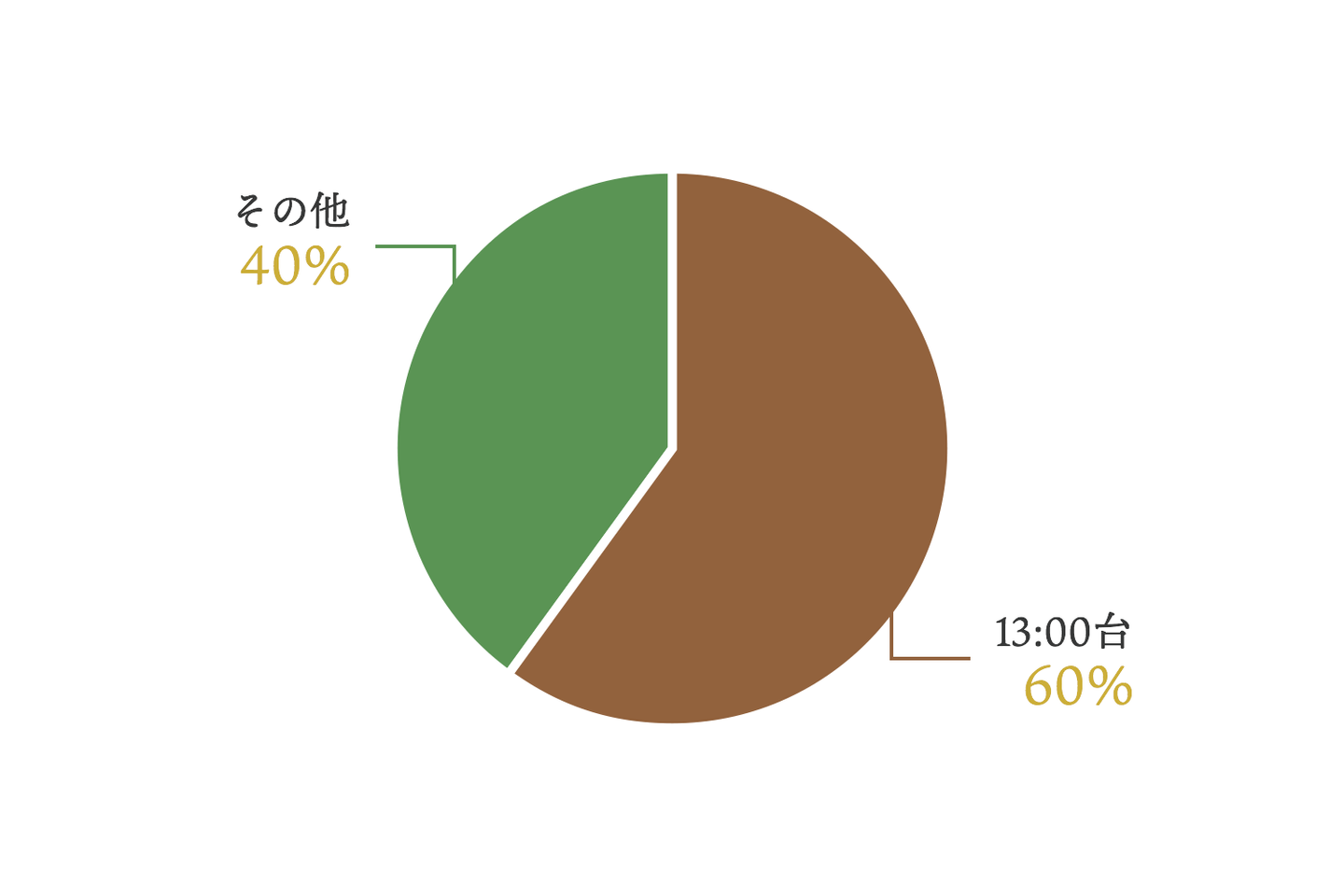 13:00台に行く人が 60%