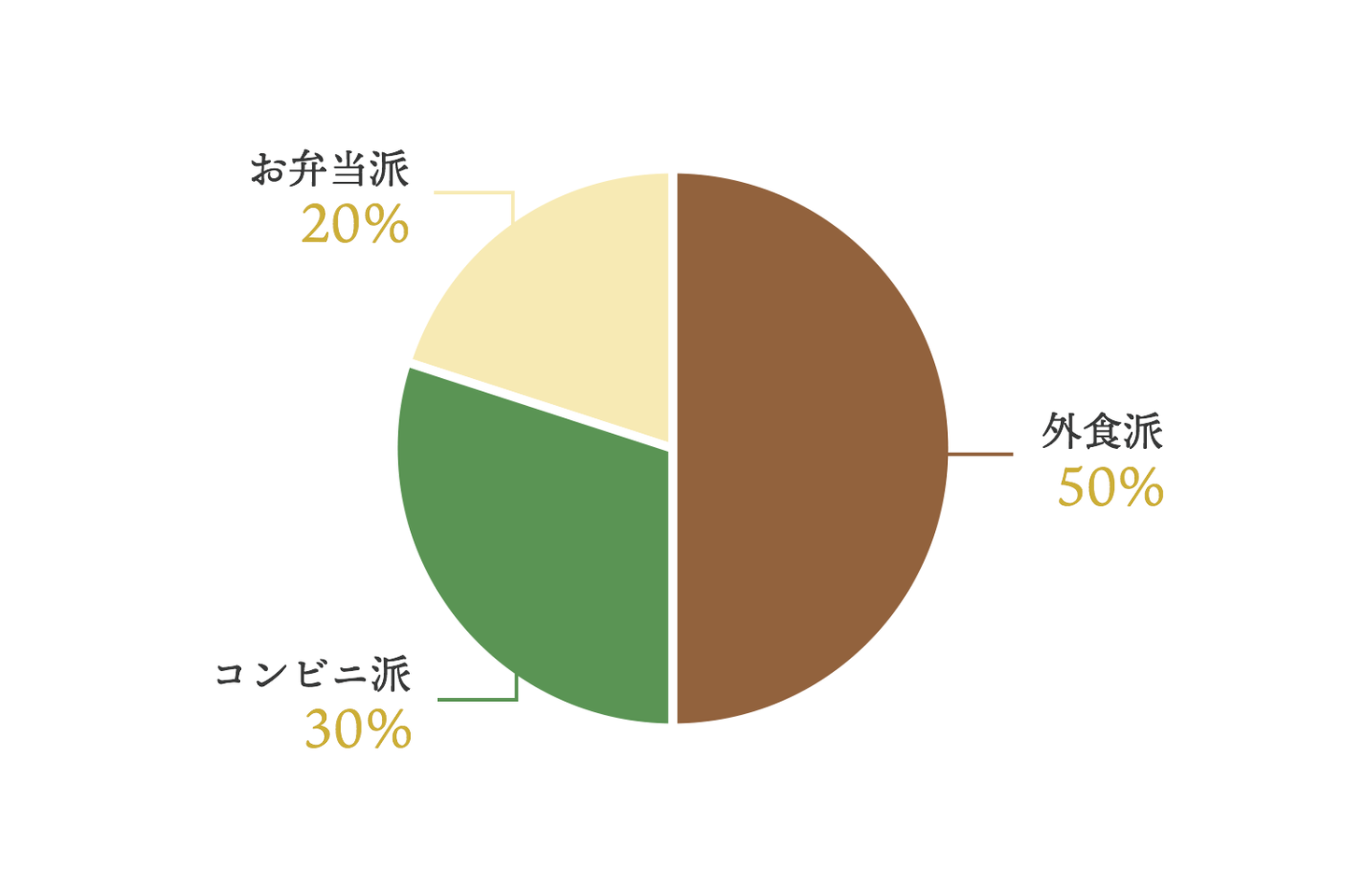 外食派 50% お弁当派 20% コンビニ派 30%