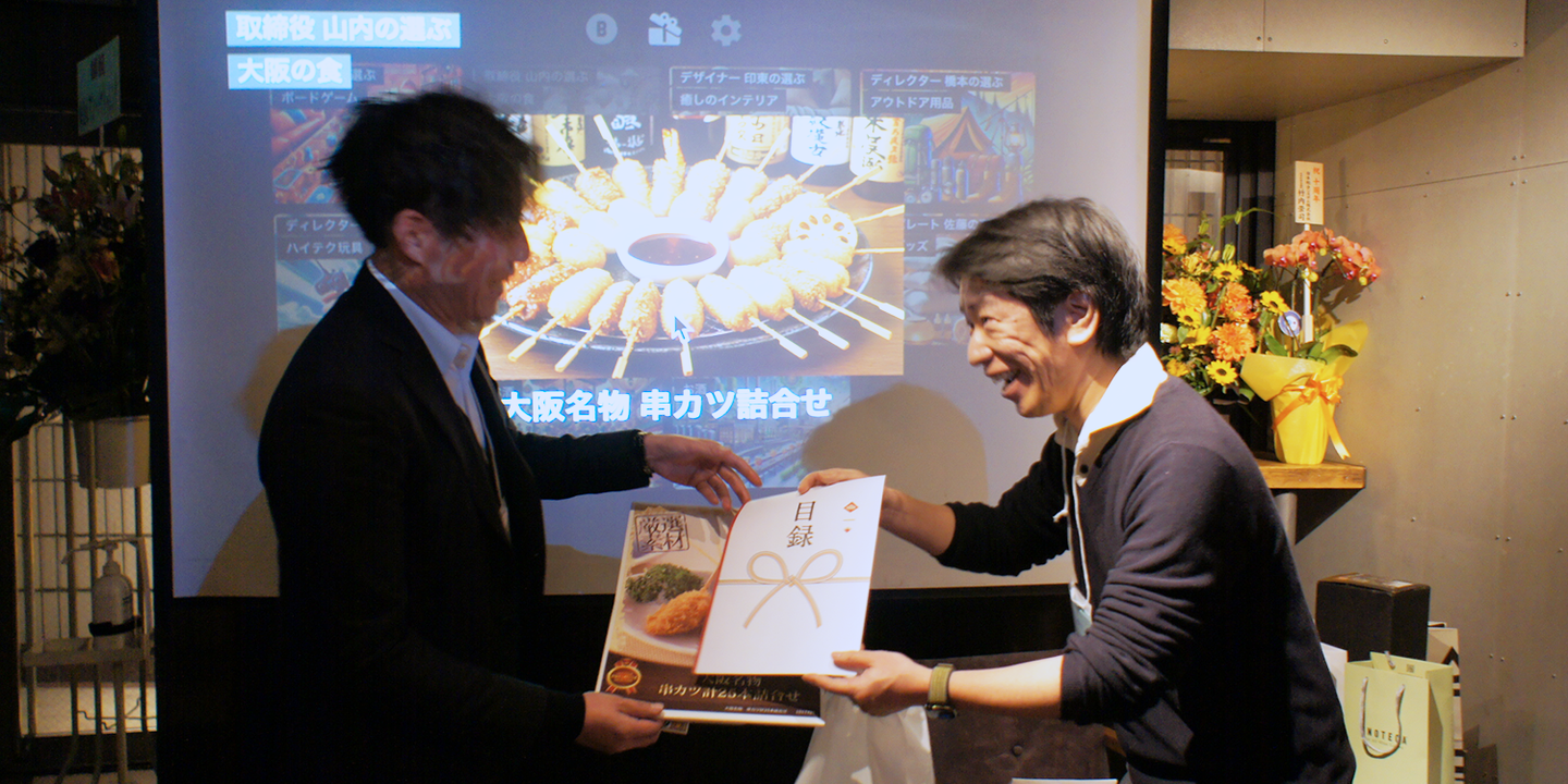 プレゼントをゲットした方には用意したスタッフから贈呈し、コメントをいただきました。こちらも普段のやりとりでは知らない趣味なども聞くことができ興味深かったです。
