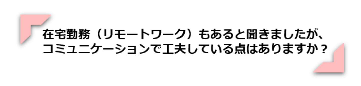 在宅勤務(リモートワーク)の頻度や推奨しているかは事業部によって異なりますが、今は基本的にオンラインでのコミュニケーションが主流です。