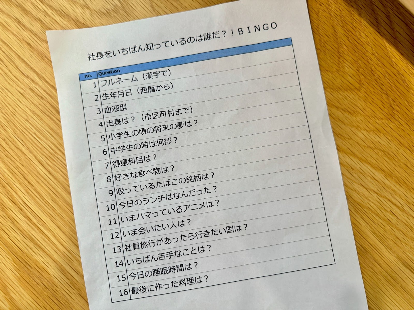 “社長をいちばん知っているのは誰だ?!BINGO”