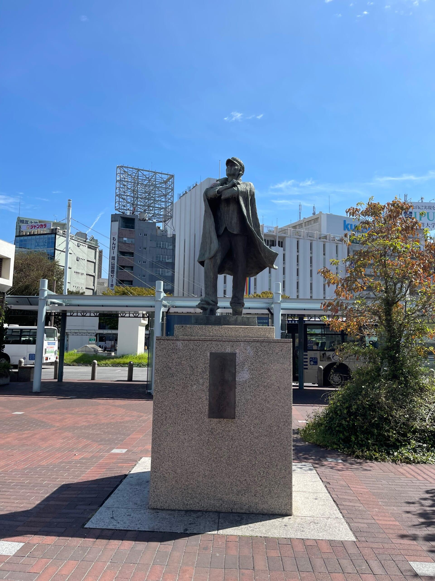 到着したら銅像が立ってて、「桃太郎だ!」と自然と声が出てしまいました(笑)