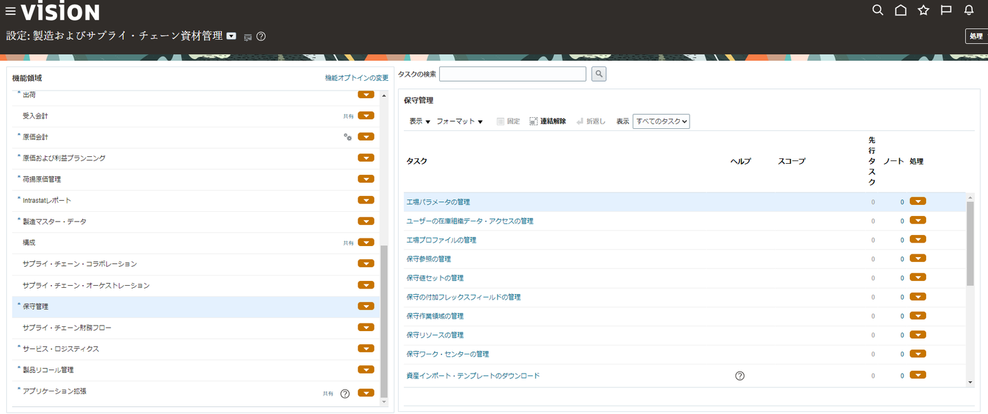クラウドと名前についていますが、「クラウド」の語から思い浮かぶネットワーク越しにサーバーやストレージを利用するサービス形態を指すものとは異なります。Oracle Maintenance CloudはSCM(サプライチェーン・マネジメント)内のモジュールの一つで、企業が所有する製造や物流などのプロセスを効率的に管理するためのツールです。