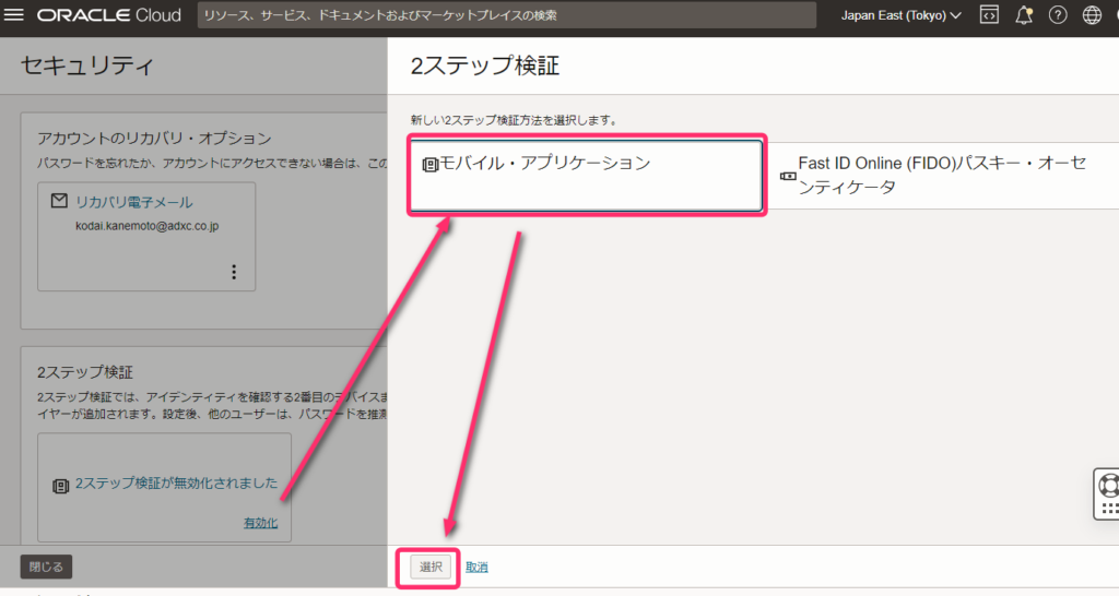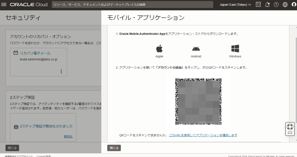 このときに二次認証として、Oracle Authenticatorというアプリでの認証が必要となります。使用者がお使いのスマートフォンに「Oracle Authenticator」をインストールして認証しましょう。