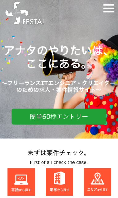 フリーランスITエンジニア・クリエイターのための求人・案件情報サイト FESTA!を公開いたしました。