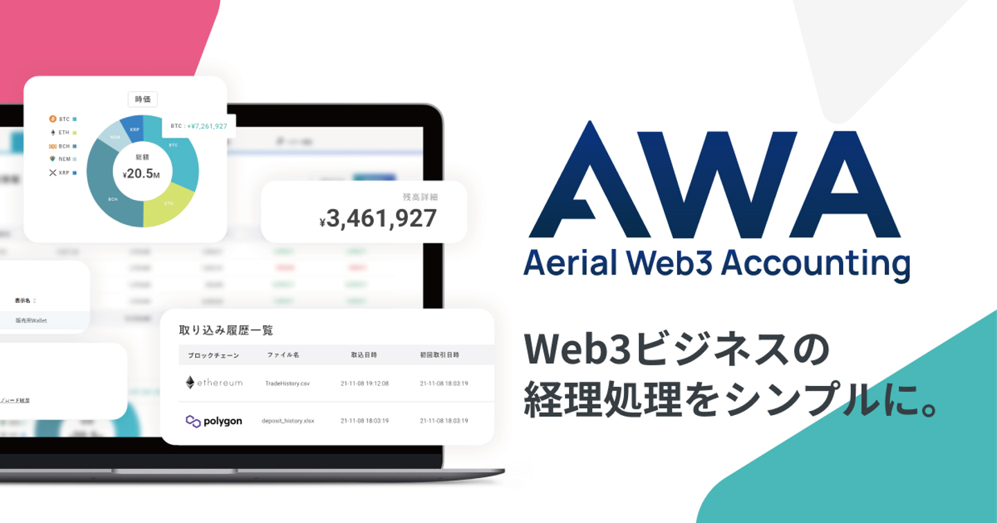 ・Web3事業者向けの経理サポートツール「Aerial Web3 Accounting(AWA)」提供を開始。