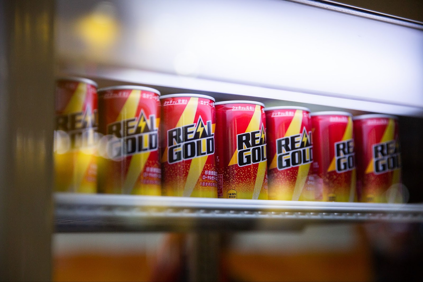 ブランドカラーのオレンジでデザインされたAeyeScan展示ブース。あのエナジードリンクも用意しました