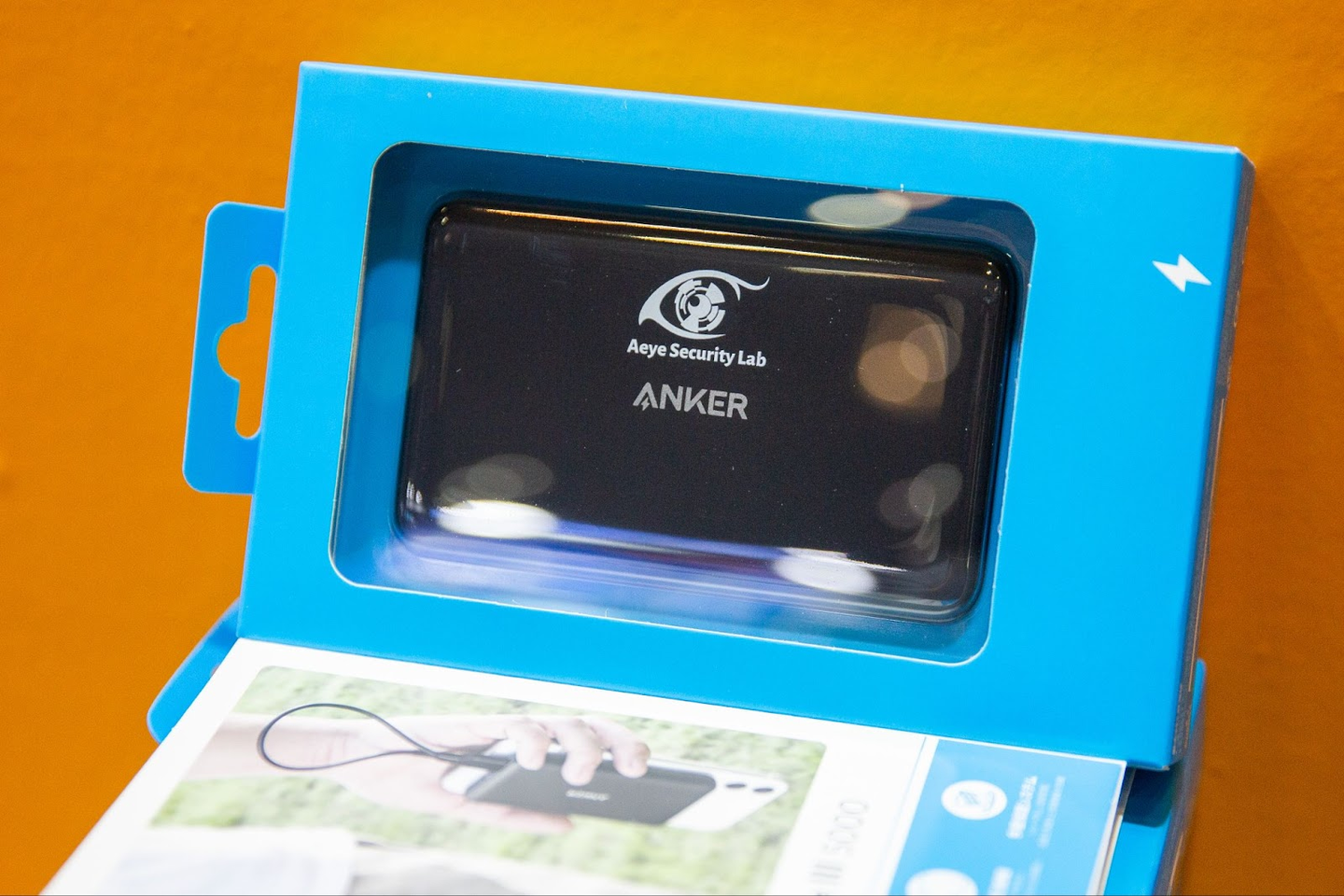 ちなみに、こちらのAnkerモバイルバッテリーですが、当社エーアイセキュリティラボのロゴをプリントしたスペシャルバージョン。実際にお渡しさせていただいたみなさまには大変喜ばれるプレゼントとなりました。