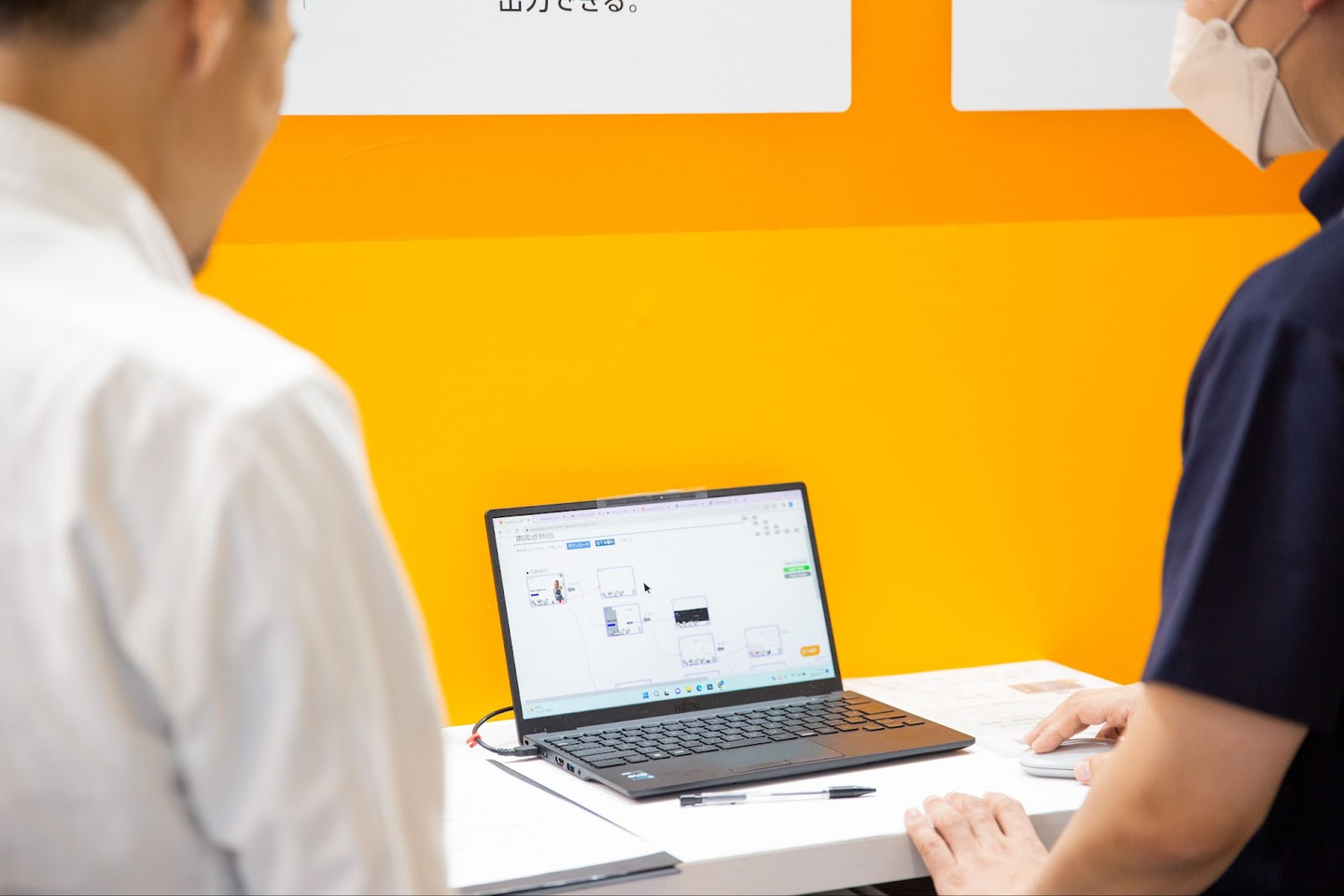 一般的な自動診断ツールと違い、AeyeScanはAIが対象アプリケーションを自動でクローリングして、高精度なテストシナリオを自動生成するという点が特徴のひとつです。そうしたAeyeScanの特徴を体感いただけるよう、ブース内にはAeyeScanを体験できるデモ機を4台設置しました。
