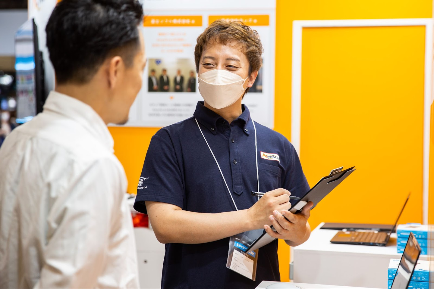 ブースは、AeyeScanのブランドカラーであるオレンジ色でデザイン。パッと会場が明るくなるカラーリングで、多くの方々の目に留めていただけるようなブースとなりました。