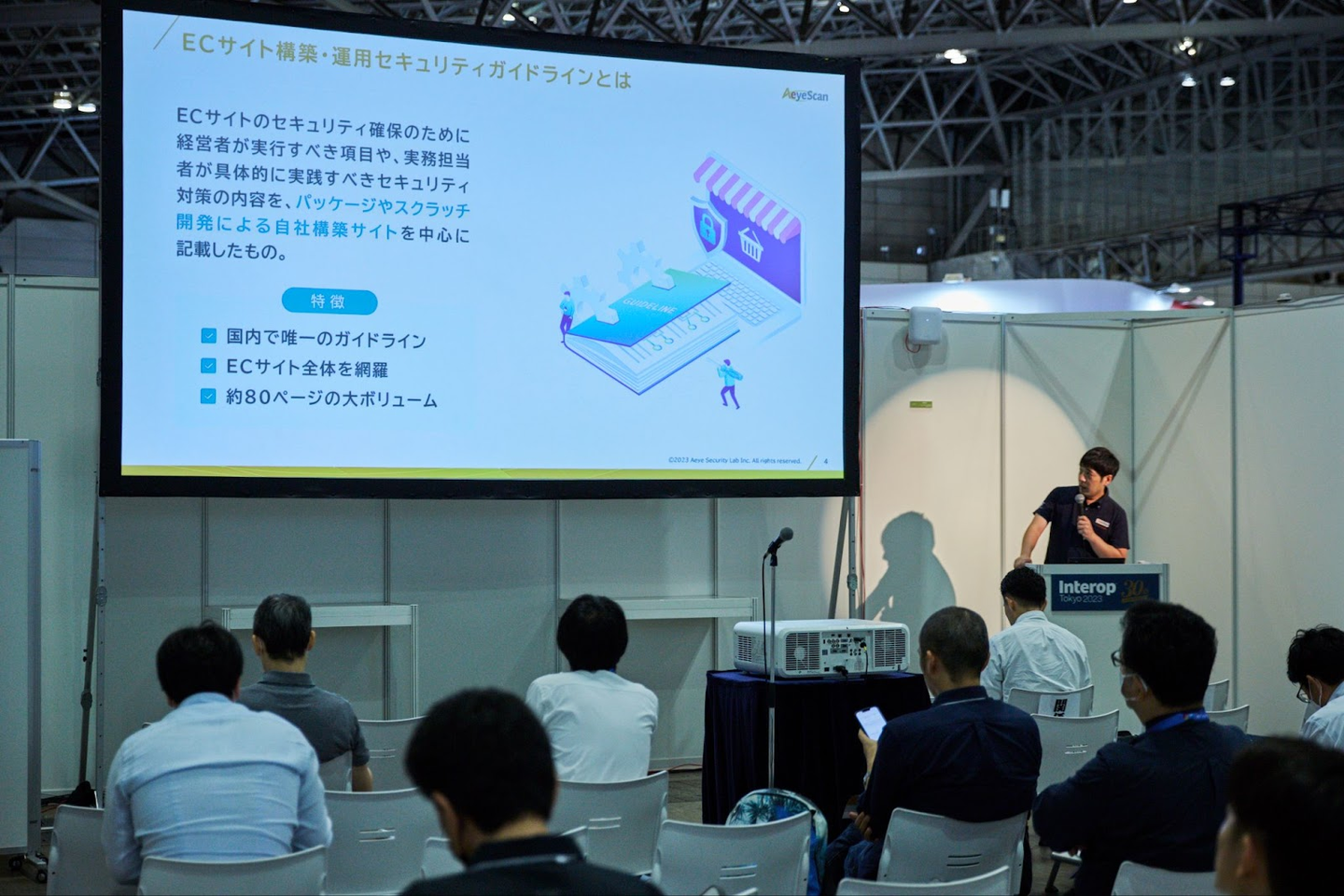 当社は、本格的な脆弱性診断を専門知識不要で実現できる、SaaS型脆弱性診断プラットフォーム『AeyeScan』を運営しています。そしてこのたび、2023年6月14日(水)~16日(金)の3日間、幕張メッセにて開催されたインターネットテクノロジーのイベント『Interop Tokyo 2023』に出展させていただきました。