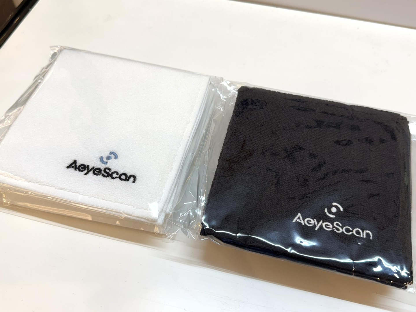 なおブースでご紹介したお客様へは、オリジナルデザインの今治ハンドタオルをお渡ししています。白と黒の2色から、お好きな色を選んでいただけます。あなたはどちらの色がお好みでしょうか?