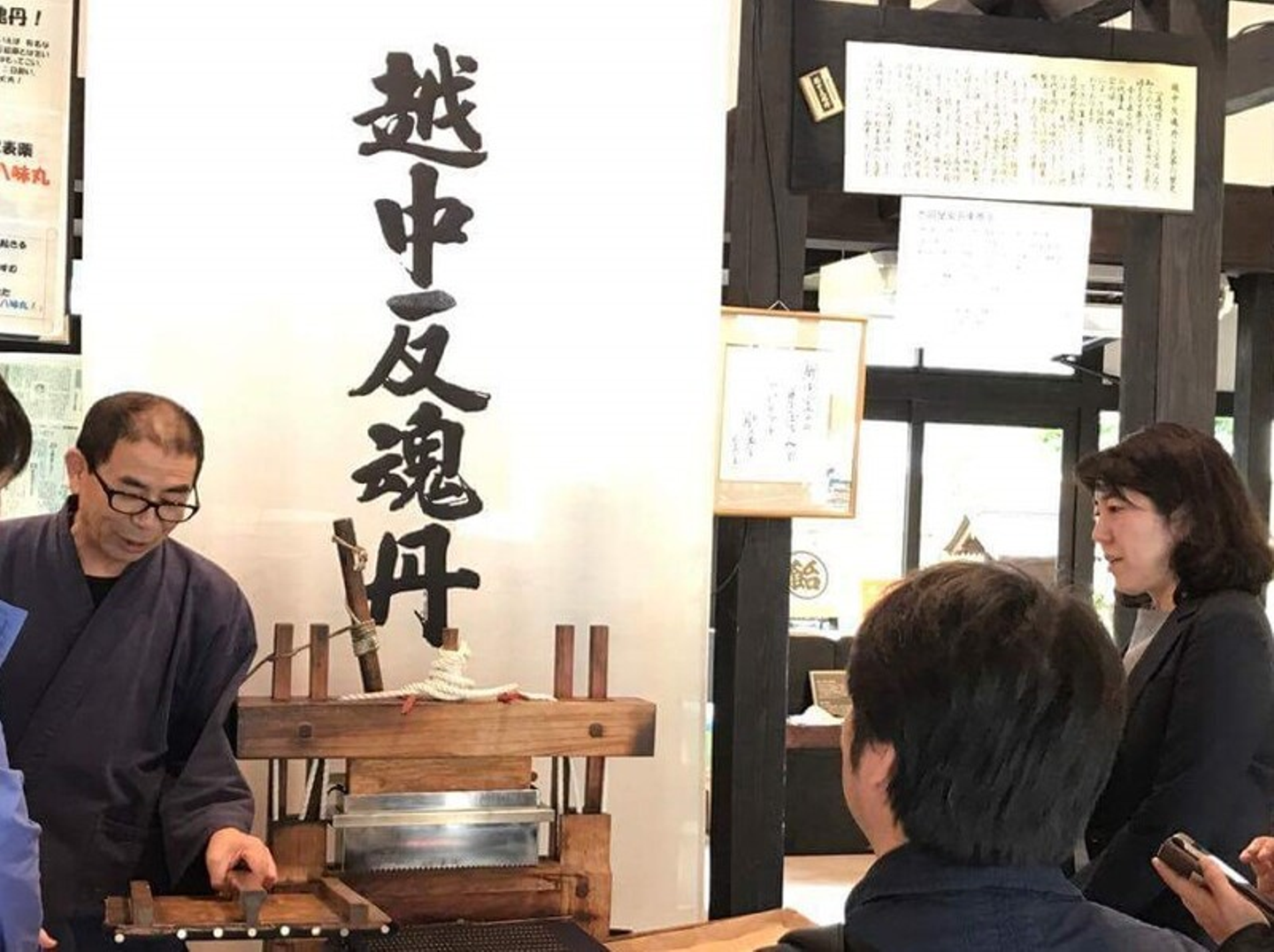 置き薬のルーツである富山を訪問し説明を聞く(右端)
