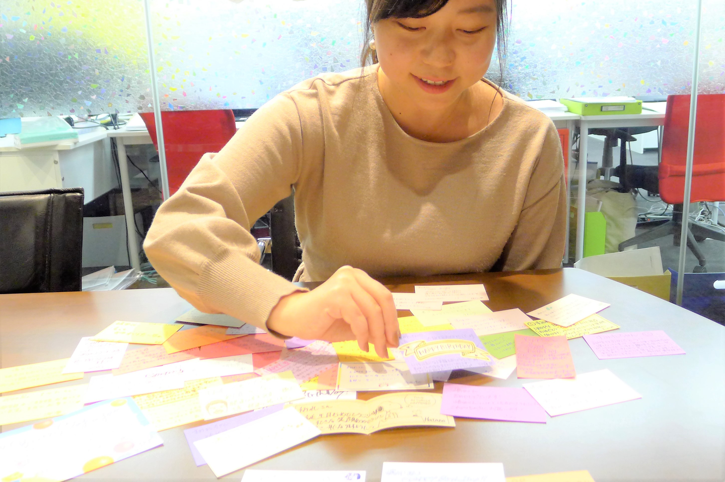 すみれさん「(笑)揚羽のみんなからもらうバースデーカードは、縦書きとか横書きとか、それぞれの個性が爆発していて。さすが、クリエイティブの会社っていうか。見ているととても面白いんですよね。」