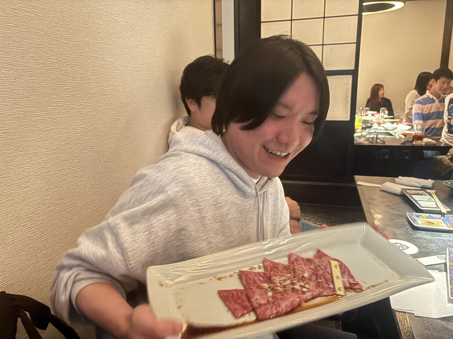 テーブルいっぱいに並ぶ極上焼肉を囲みながら、日々の奮闘をたたえ合い、笑い声が絶えませんでした。
