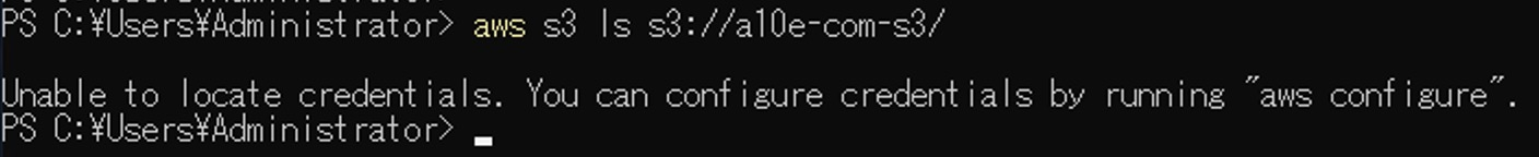 PS C:\Users\Administrator>ちゃんとS3バケットに対してアクセスできていますね。