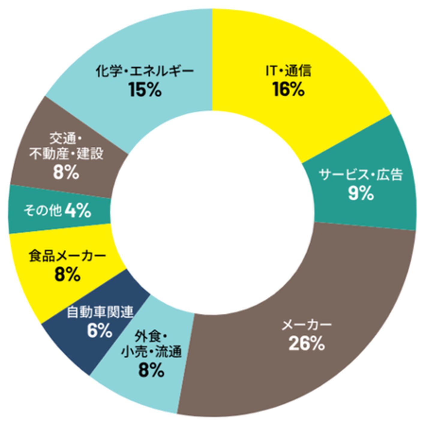 クライアントは東証プライム上場の各業界のリーディングカンパニーが90%以上を占めます。