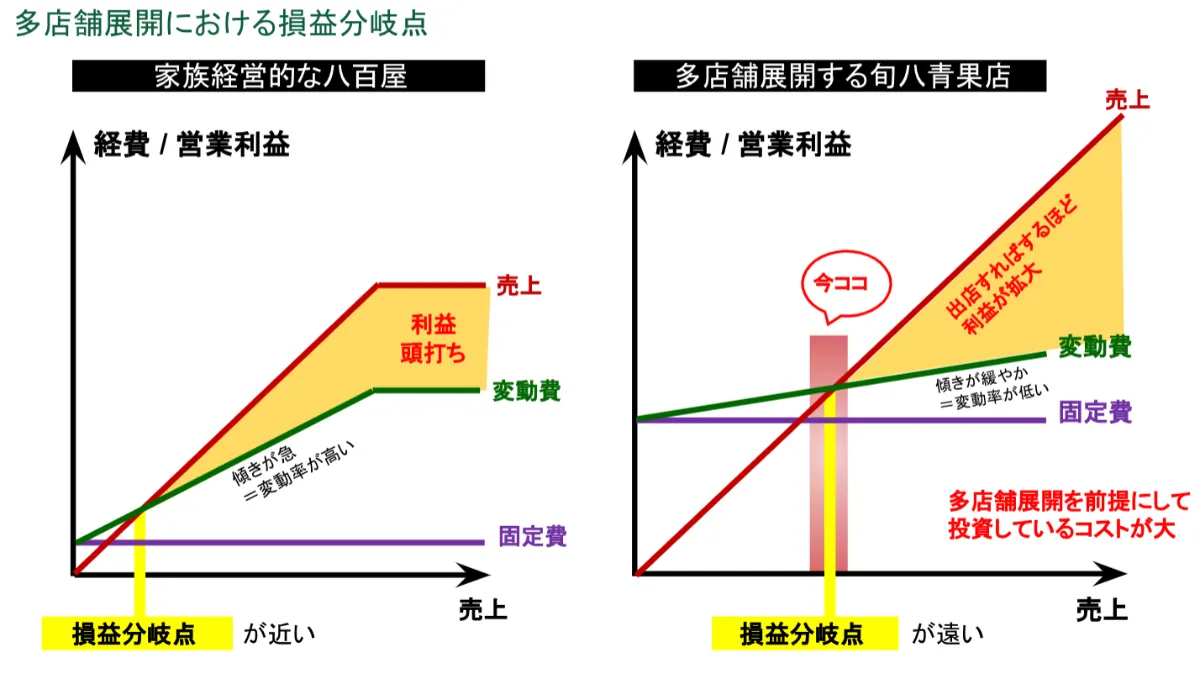 多店舗展開の旬八青果店は出店するほど利益が拡大する(旬八大学より)