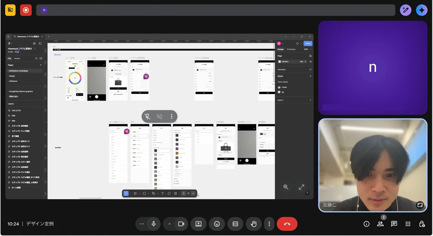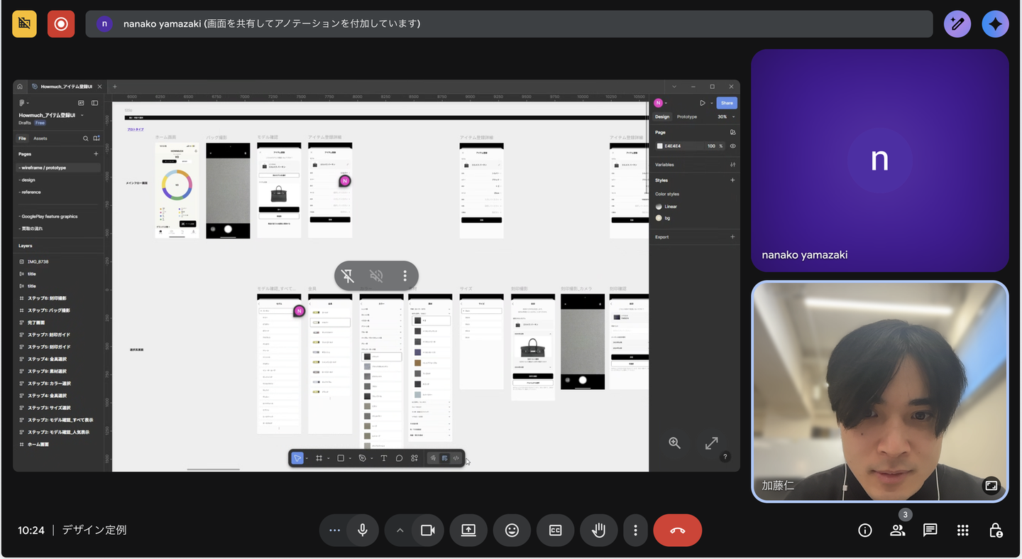 本業と並行して、スポットでHOW MUCHのデザイン業務に関わっています。働き方は完全オンラインで、要件の共有やサービス改善の議論はミーティングで行い、実際のデザイン作業はFigmaで進めています。