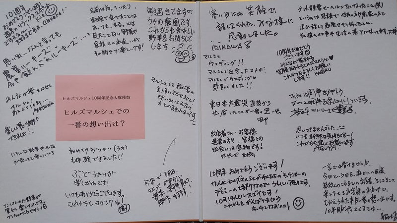 10周年の日に、「ヒルズマルシェの一番の想いでは?」という寄せ書きを色々な方にお書きいただいたのですが、あるお客様が書かれた