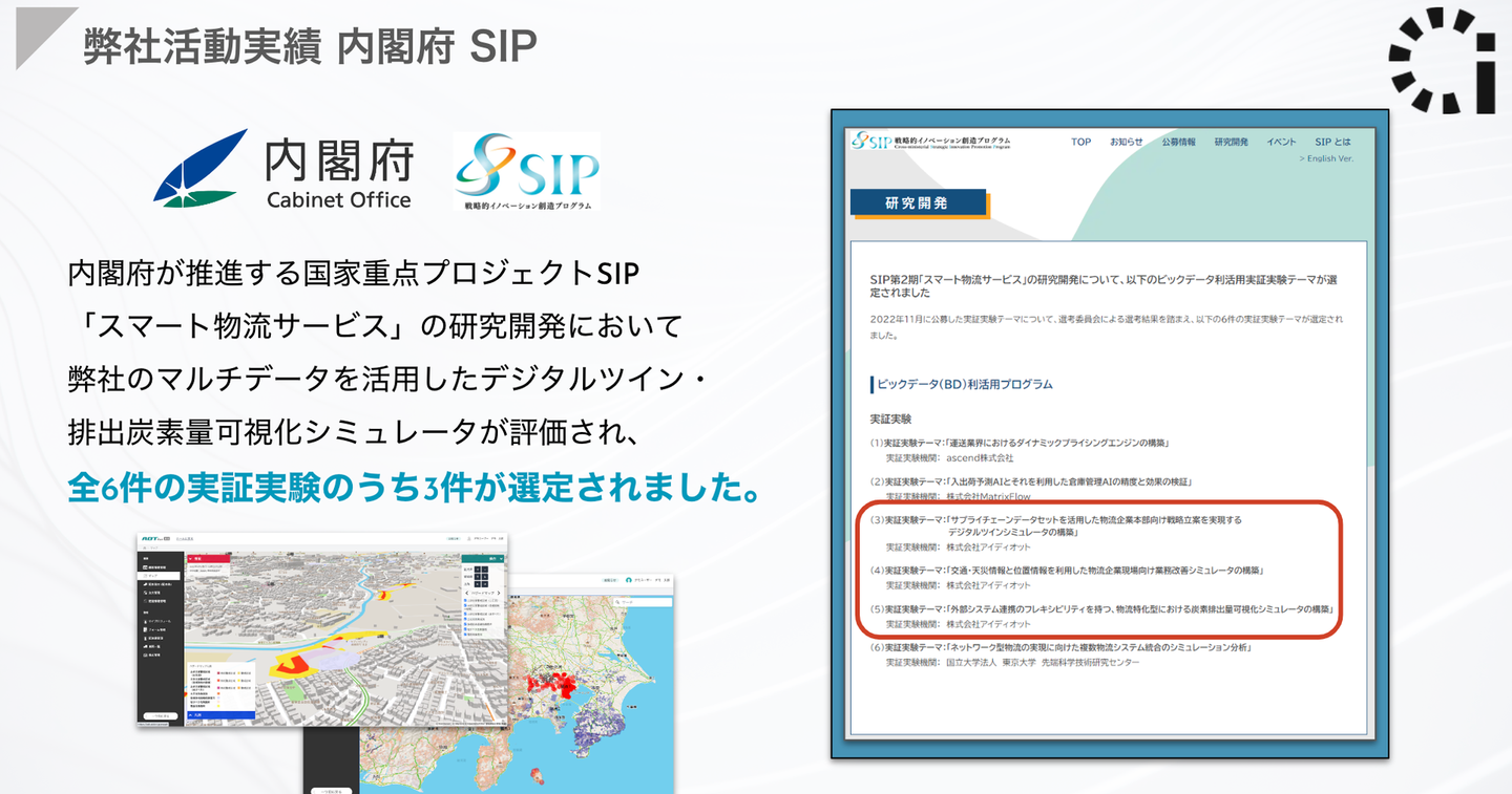 また、内閣府から未来の技術に対する実証実験予算をいただき、国⺠にとって真に必要な社会的課題や日本経済再生に寄与できるような世界を先導する課題に取り組んでいます。