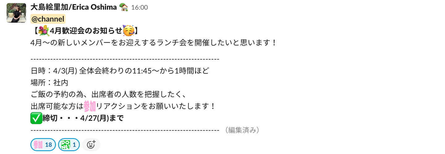 歓迎会はランチの時間を活用して行うことが多いです!夜はプライベートの予定があるメンバーも多いので、お昼開催にすることで、参加率が上がります📈