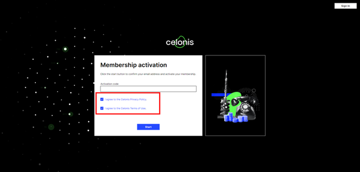 クリック後、Celonisのアクティベーション画面が表示されます。