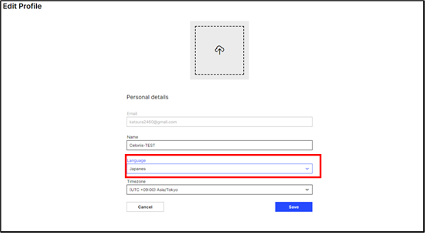 「Edit Profile」画面が表示されたら、「Language」のコンボボックスで「Japanese」を選択し「Save」ボタンをクリックします。