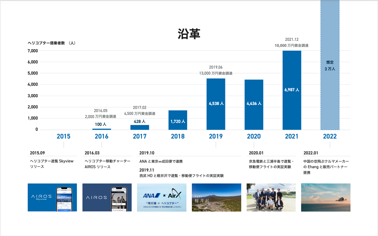 事業も2015年からスタートし、2021年は年間搭乗者が約7,000人になりました。月間のフライト数も2021年12月には、500フライト以上になりました。2022年はグッと事業を成長させるべく、年間利用者を30,000人にすべく、日々、メンバーで奮闘しています。更に「空を身近に、人生が豊かに」(AirXのミッション)を実現していきます。