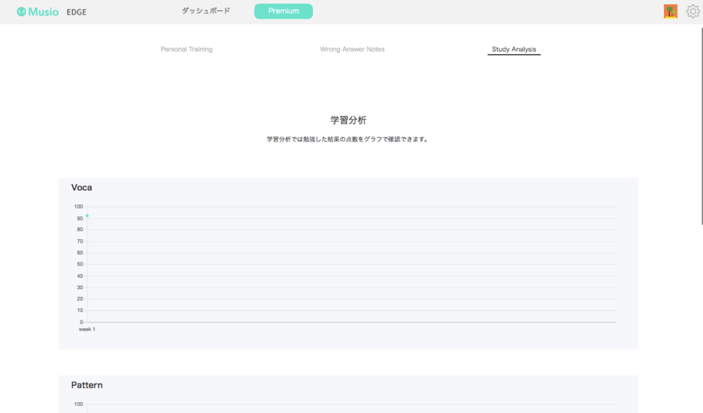 さらになんと、Musio EDGE Premiumプランの場合、人工知能がユーザーの弱点を分析し、専用のトレーニングセッションを生成してくれる機能があります!