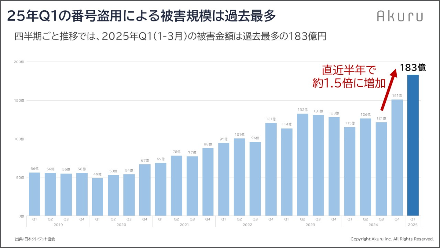 ※1 一般社団法人 日本クレジット協会「クレジットカード不正利用被害の状況について」https://www.meti.go.jp/shingikai/mono_info_service/measures_against_fraud/pdf/001_01_04.pdf