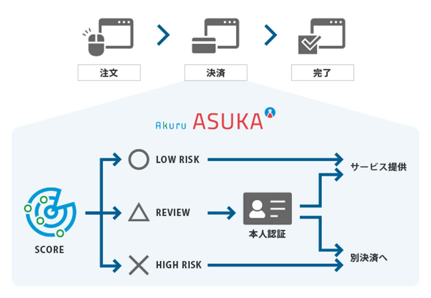 そこで登場するのが、私たちが提供する”不正検知認証システム「ASUKA」です。全てをお伝えすることはできませんが、ほんの少しだけその仕組みをここで解説します。